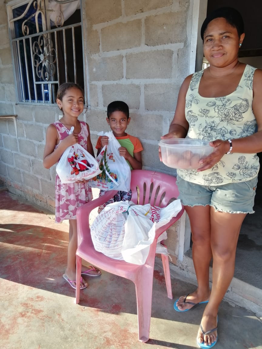 Below you can see some of the children and their families in La Guajira receiving food parcels and Christmas presents.